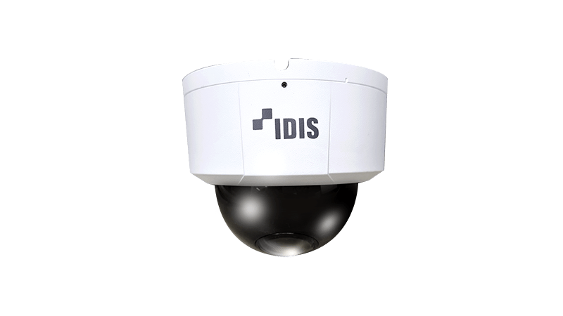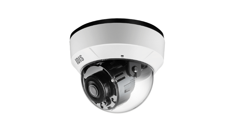 The most widely specified camera type for commercial interiors. IDIS dome cameras range from 2MP Full HD through to 8MP 4K, including motorised varifocal and IR variants for low-light environments. Vandal-proof (IK10) models suit retail, education, and public-facing spaces.