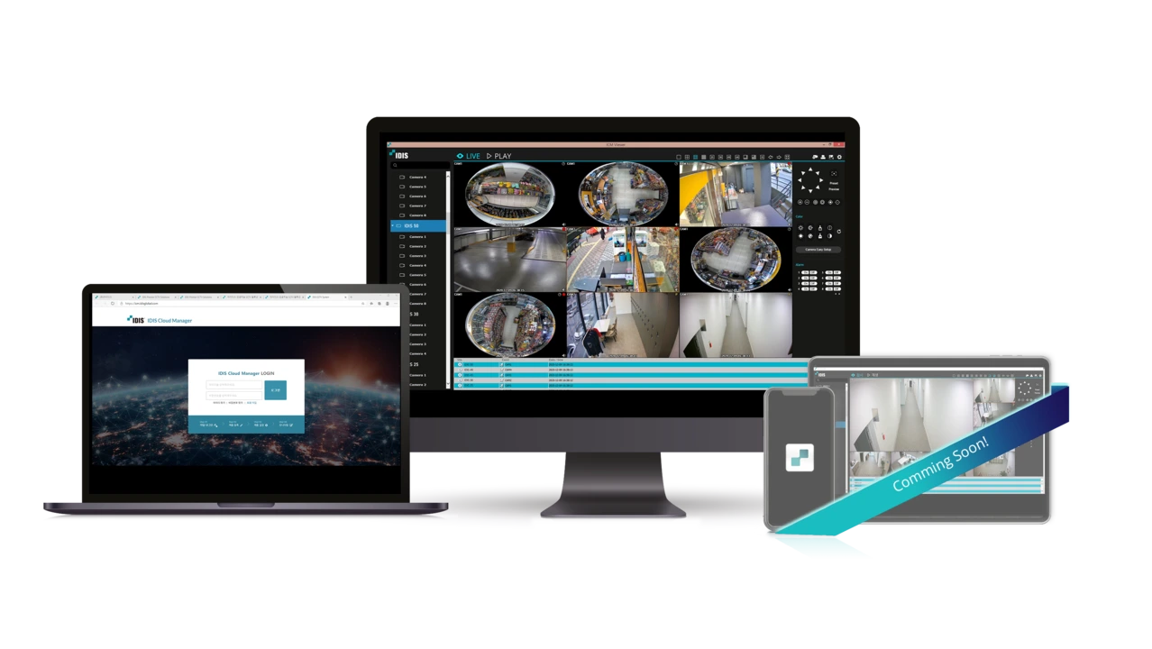 - IDIS Cloud Manager — cloud-based multi-site management; remote access and configuration; mobile and desktop; no subscription fee